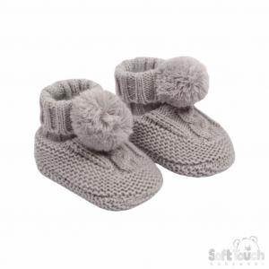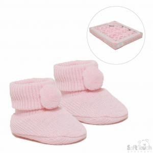 "New Arrival" Bib, Hat & Bootee Pom Pom Set