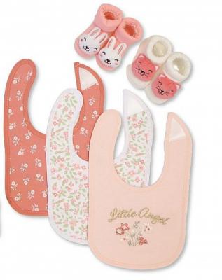 "New Arrival" Bib, Hat & Bootee Pom Pom Set