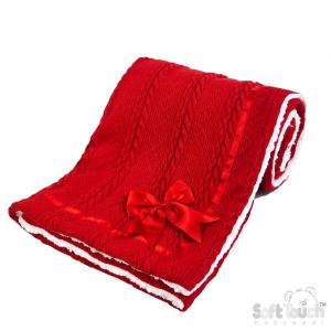New Steel Blue Cable Knit Wrap with Poms and Sherpa