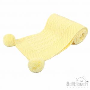 Lemon Yellow Elegance Cable Knit Wrap with Pom Poms